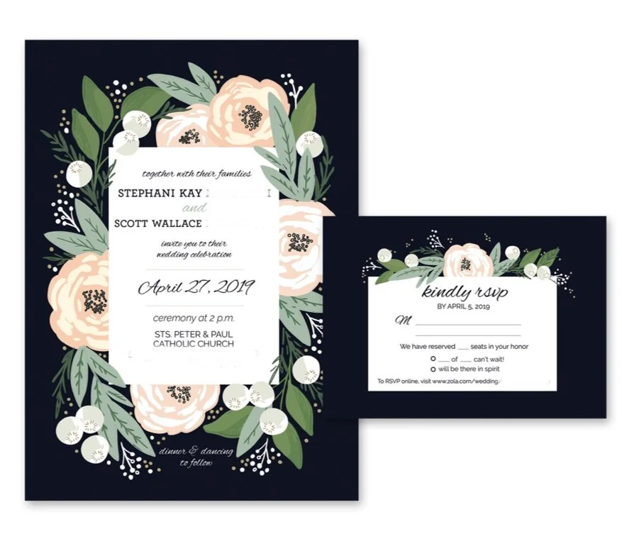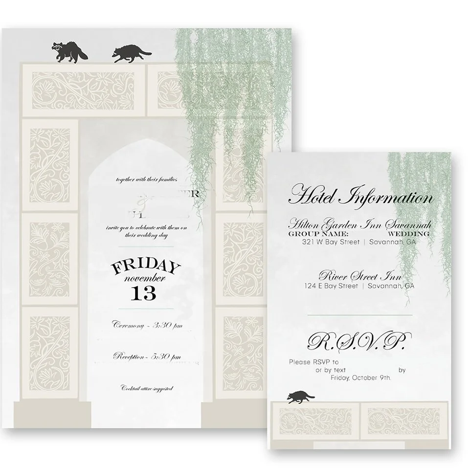 Custom wedding suites are a specialty of mine. Everything you see below has been illustrated and designed by me, including floral, venue and landmark illustrations.