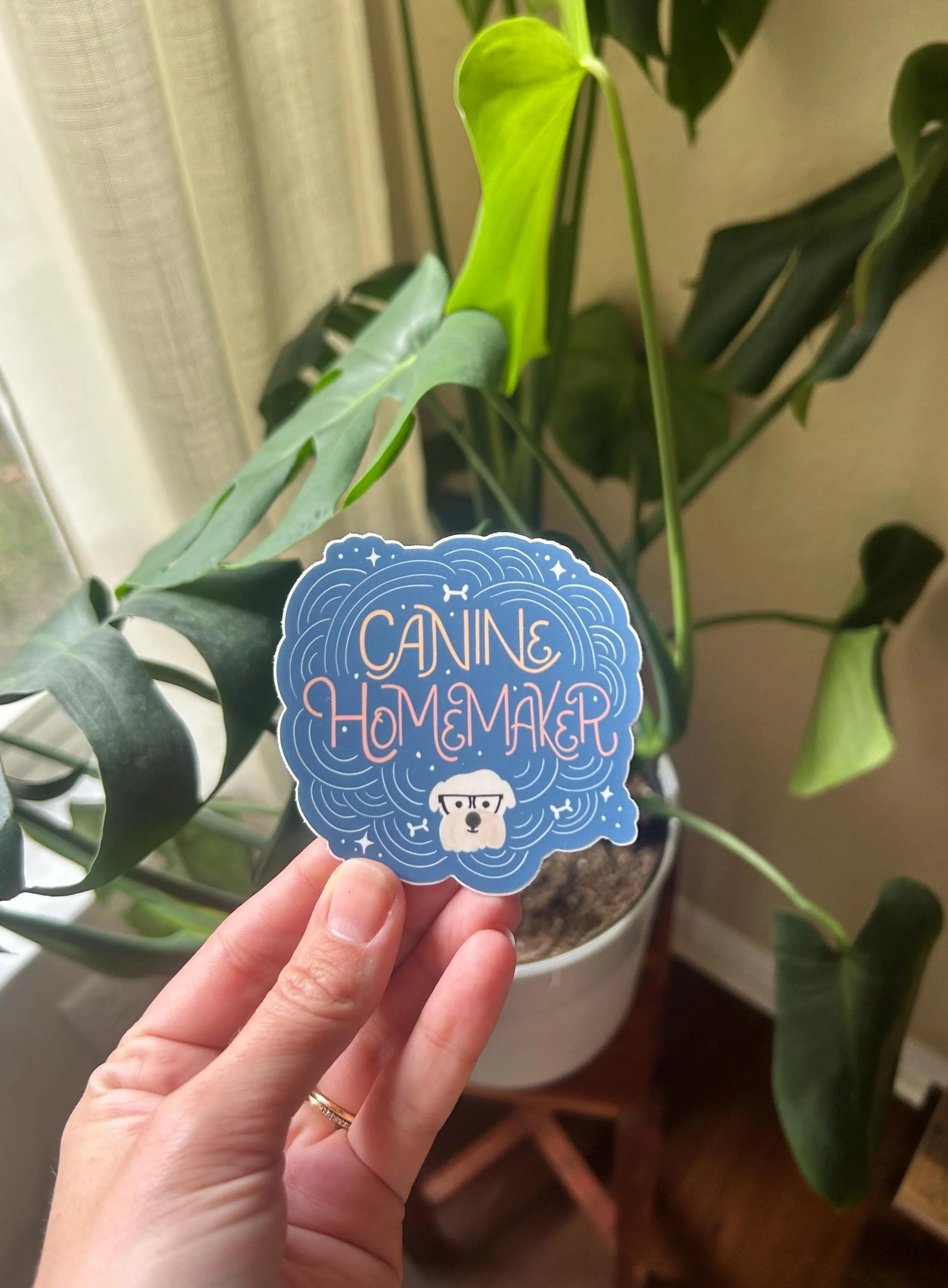 This funny dog mom sticker features a new term - Canine Homemaker. It's perfect for any dog parent!