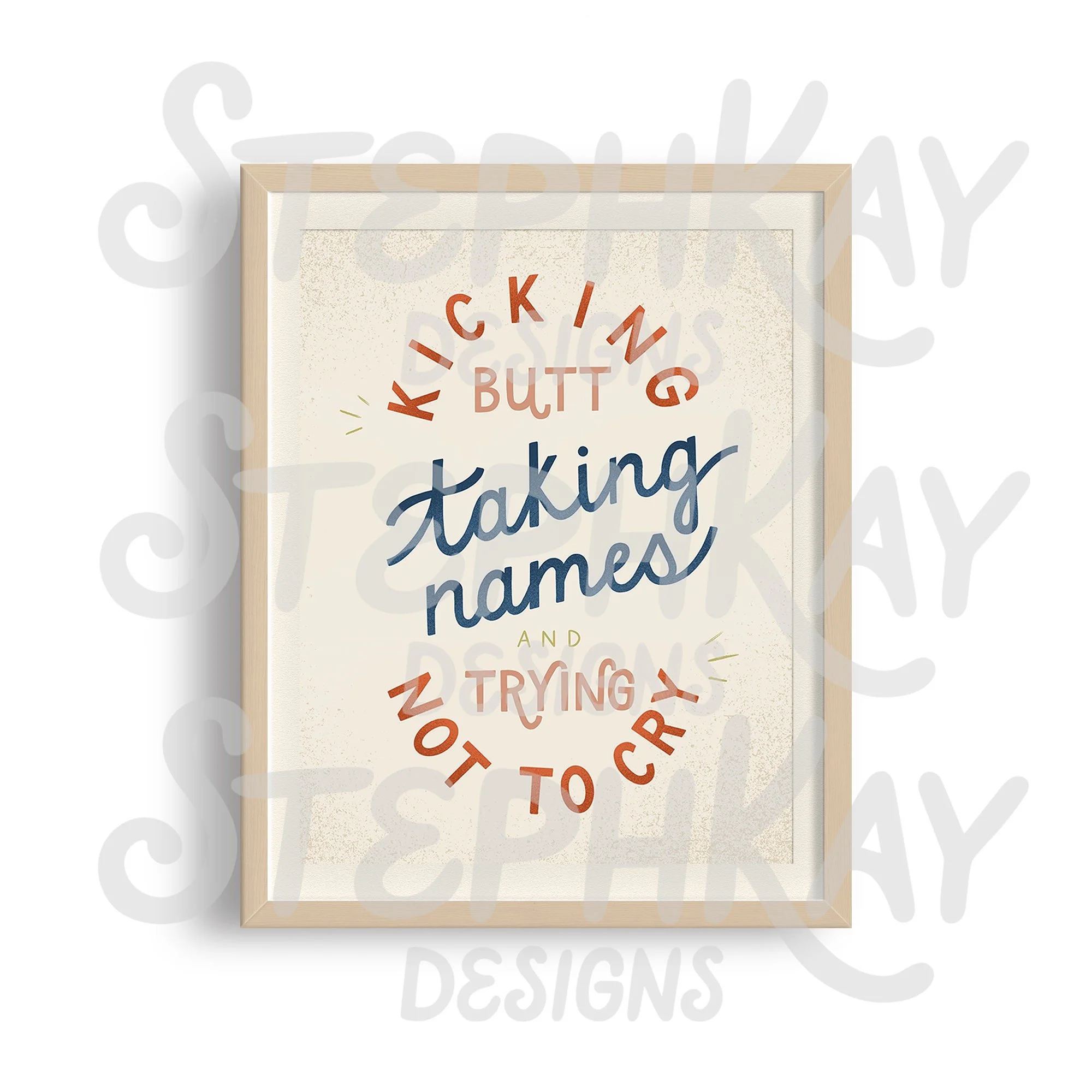 Kicking Butt Taking Names Art Print: Empowering Funny Gallery Wall Decor